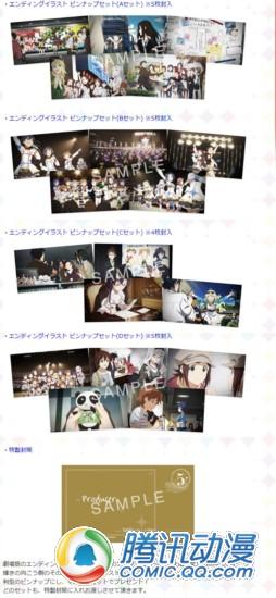 而与此同时,官方也继续特典宣传攻势。根据官网的预告,在下一周的特典将是“片尾曲画面彩图套装”,该套装将有4种款式,每款当中会赠送4~5张不等的彩图(A、B、D套装均为5张,C套装为4张),可以说极具收藏价值。而每个套装都将用特制信封进行包装,相信哪怕作为礼物送人也都颇有面子。
