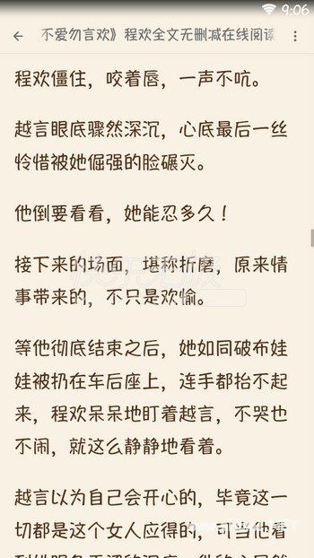 注:886动漫重视作者及相关版权方权益,只推荐知名作者及其作品给读者朋友们,886动漫不提供在线阅读服务,仅发表小编对《不爱勿言欢》小说的个人见解和感受,不以盈利为目的,小说均来自相关小说阅读APP授权,如果无意中侵犯了您的权益,建议先联系APP方面确认是否有授权关系,如确认没有授权关系,我们愿意配合排除影响及时下架。怎样进行不爱勿言欢(程欢越言)未删节全章节阅读?下载安装App后在APP中搜索小说名《不爱勿言欢》,如果没有您要的小说,请联系APP内的客服!