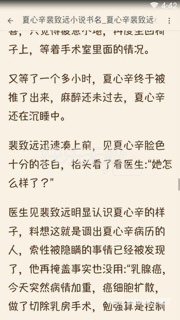 小护士有些奇怪:“你不是夏小姐的朋友吗?不知道她乳腺癌并且癌细胞扩散的事情?”