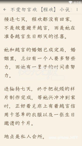 怎样免费阅读不爱勿言欢(程欢越言小说)已完结全文小说?下载安装App后在APP中搜索小说名《不爱勿言欢》,如果没有您要的小说,请联系APP内的客服!