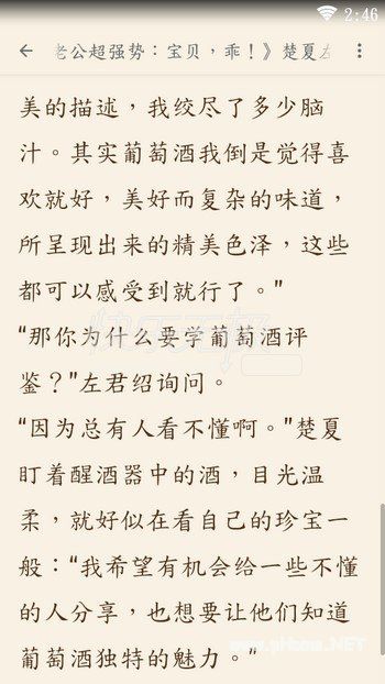 楚夏摇摇头:“放过我吧,你都不知道为了那些听上去特别唯美的描述,我绞尽了多少脑汁。其实葡萄酒我倒是觉得喜欢就好,美好而复杂的味道,所呈现出来的精美色泽,这些都可以感受到就行了。”