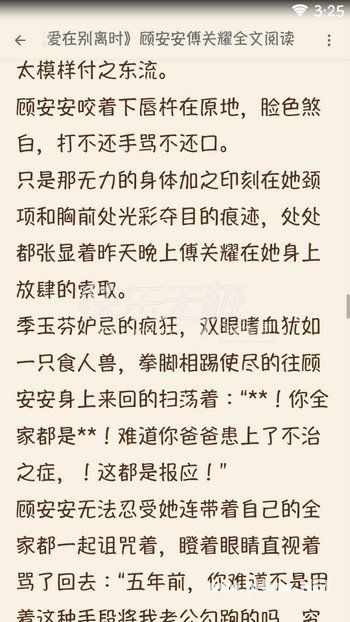 小说《爱在别离时》将爱情完美诠释。若是注定轰轰烈烈的爱情,若是注定平静如水的宁静,走向属于爱情的宿命。意外的是,在她出院当天手机进来一个意想不到的电话,是她爸爸顾之华的来电:“安安,你是不是和关耀吵架了?不会是你又惹他不高兴了吧。更多精彩内容尽在小编提供的《爱在别离时》APP,在内搜索书名即可免费阅读。