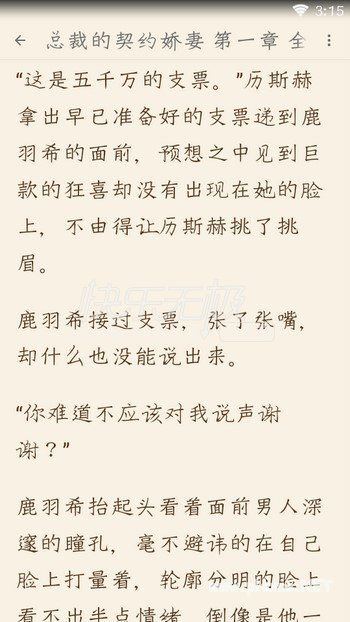 用尽一生,倾尽一世,爱我所爱,读我想读的小说《总裁的契约娇妻》主角鹿羽希历斯赫小说全文免费在线阅读。只愿将你心换我心,为你始知相忆深。历斯赫没有计较,认同的点了点头从胸口掏出钢笔在那份契约上流畅飘逸的签下几个大字,推到鹿羽希面前后又重新拿出一份文件递给鹿羽希,这是婚前协议。看着厚厚的一叠文件,鹿羽希不由得皱了皱眉,她现在急需要那笔钱,自己费劲心思也不过想到了两页纸,比起历斯赫这一堆实在是大巫见小巫。小编为大家带来《总裁的契约娇妻》完整版app内免费在线阅读全本资源大结局。