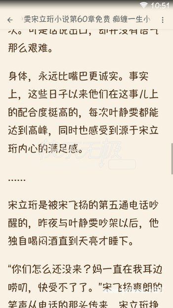 痴缠一生完整全文分享阅读,小说文章清逸婉丽,流畅连贯,尤其人物语言幽默风趣,再加上一些精妙词语的使用,无形中为文章增添了不少情趣。喜欢看叶静雯宋立珩小说全文的朋友,小编提供痴缠一生(叶静雯宋立珩小说)APP内全文免费阅读,支持叶静雯宋立珩小说在线阅读。