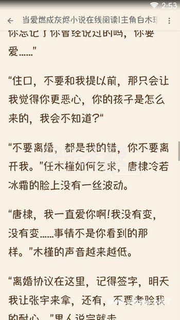 怎样看当爱燃成灰烬(唐棣白木瑾)全篇小说完整章节APP内阅读?下载安装App后在APP中搜索小说名《当爱燃成灰烬》,如果没有您要的小说,请联系APP内的客服!