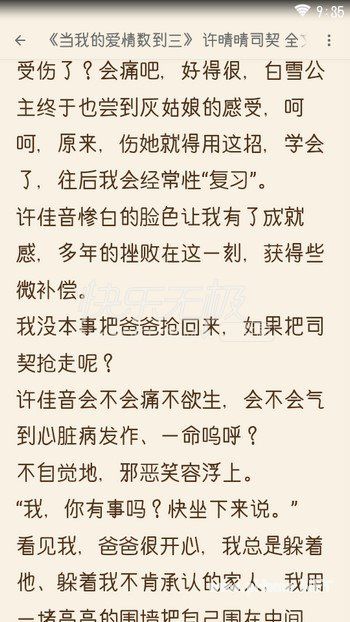 《当我的爱情数到三》是一本现代言情小说,主要讲述了许晴晴司契之间的爱情故事。我拉起司契往楼下走,客厅里,许佳音正靠着爸爸撒娇,她叉着一块苹果喂爸爸,说说笑笑。许佳音看见姐姐,连忙坐正身子,缩到沙发里面,她很怕我,从第一次见面就害怕,一路怕到长大。她低着头,但眼光三番两次偷偷瞄着我和司契交握的双手。我发现了,一个恶意念头浮上,向右一步,**司契更近,手臂贴手臂,我的脸颊几乎贴在司契身上。。喜欢看言情小说,尤其是很宠很甜的小说的朋友,快来本站下载《当我的爱情数到三》,本站还有更多优质言情小说免费下载阅读。