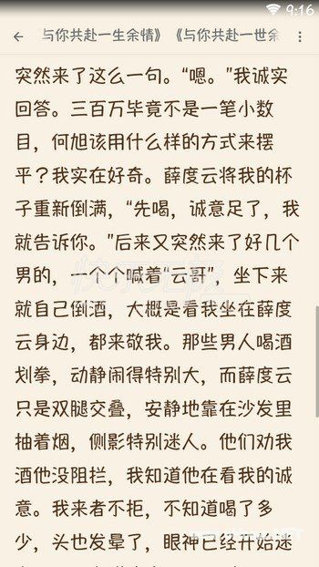 淡淡笔墨,浅浅细语。唯美宁静的小说《与你共赴一生余情》读起来让人眉欢眼笑。老实说,薛度云到底是个什么样的人我并不了解,对他的初步评价完全是出于一种直觉。见我不说话了,薛度云突然勾了勾唇,倾身向前,将我的酒杯再次倒满。本站为您提供免费下载地址,可以免费阅读《与你共赴一生余情》小说,点击下载APP即可。