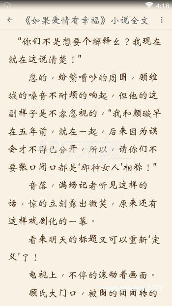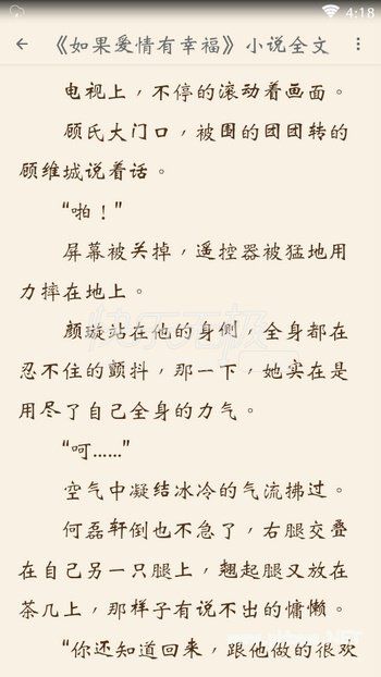 怎样免费阅读小说如果爱情有幸福?下载安装App后在APP中搜索小说名《如果爱情有幸福》,如果没有您要的小说,请联系APP内的客服!