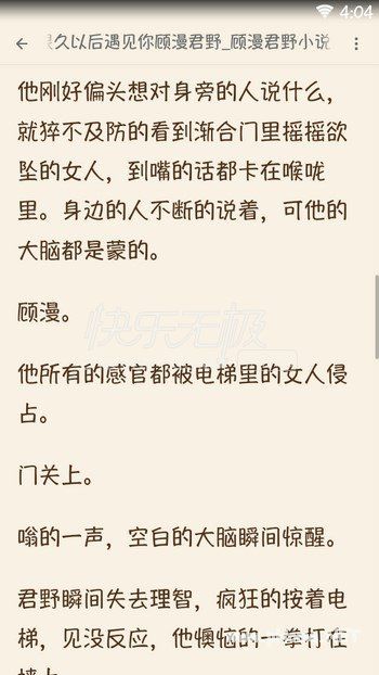 小说《很久以后遇见你》把爱情分析透彻,让人惋惜。时间很残忍,它会消磨你心底那个人。未来不是靠别人的成全,而是自己把握。他所有的感官都被电梯里的女人侵占。门关上。嗡的一声,空白的大脑瞬间惊醒。君野瞬间失去理智,疯狂的按着电梯,见没反应,他懊恼的一拳打在墙上。欢迎下载小说《很久以后遇见你》APP免费阅读全文。