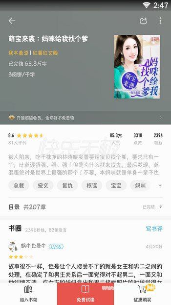 妈咪给我找个爹小说整本书读下来没有什么拖沓的感觉,足以证明作者行云流水的文笔和恰到好处的剧情。