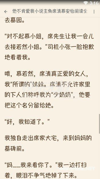 他不肯爱我小说文笔细腻优美,情节生动有趣,题材特别新颖,很好看的一篇小说,他不肯爱我小说全本资源分享给大家,喜欢的朋友欢迎下载阅读他不肯爱我(慕安怡席清小说)完整版全文APP内在线阅读 未删节,提供他不肯爱我免费阅读。