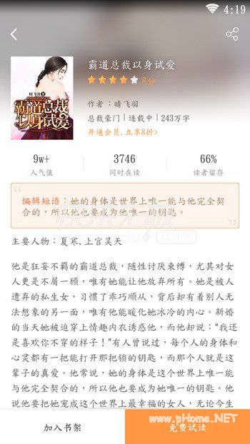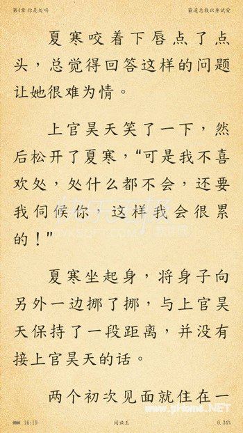 霸道总裁以身试爱完本小说APP内免费阅读,完整的章节,无任何弹窗广告;一本在故事上精彩无限、在感情上流连婉转、在文笔上入木三分的小说,不管从哪个角度看霸道总裁以身试爱小说,想体验文笔的美好,就下载小说霸道总裁以身试爱完整免费阅读。