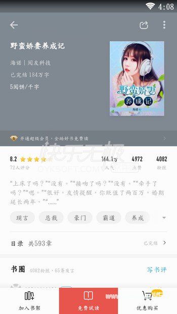 注:886动漫重视作者及相关版权方权益,只推荐知名作者及其作品给读者朋友们,886动漫不提供在线阅读服务,仅发表小编对《野蛮娇妻养成记》全章节的个人见解和感受,不以盈利为目的,小说均来自相关小说阅读APP授权,如果无意中侵犯了您的权益,建议先联系APP方面确认是否有授权关系,如确认没有授权关系,我们愿意配合排除影响及时下架。怎样体验野蛮娇妻养成记全文免费阅读?下载安装App后在APP中搜索小说名《野蛮娇妻养成记》,如果没有您要的小说,请联系APP内的客服!