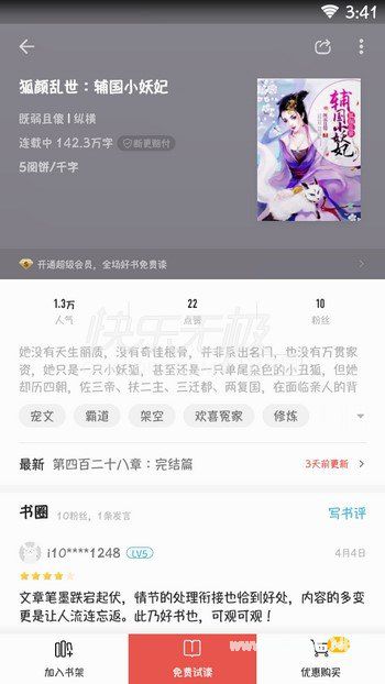 小说《狐颜乱世辅国小妖妃》主角活出了风度,用智慧去妆点爱情,幸福永远不会迟到!她没有天生丽质,没有奇佳根骨,并非系出名门,也没有万贯家资,她只是一只小妖狐,甚至还是一只单尾杂色的小丑狐。《狐颜乱世辅国小妖妃》全文免费资源尽在小编提供的APP。