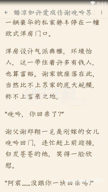 谢父谢郑翔一见是刚嫁的女儿晚吟回门,连忙赶上前迎接,白发苍苍的他,笑得一脸欣慰。