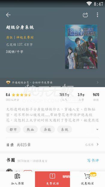 怎样免费阅读超级分身系统全本完整章节小说?下载安装App后在APP中搜索小说名《超级分身系统》,如果没有您要的小说,请联系APP内的客服!