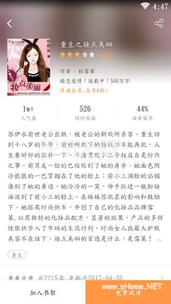 重生之妆点美丽完本小说APP内免费阅读,完整的章节,无任何弹窗广告;一本在故事上精彩无限、在感情上流连婉转、在文笔上入木三分的小说,不管从哪个角度看重生之妆点美丽小说,想体验文笔的美好,就下载小说重生之妆点美丽完整免费阅读。