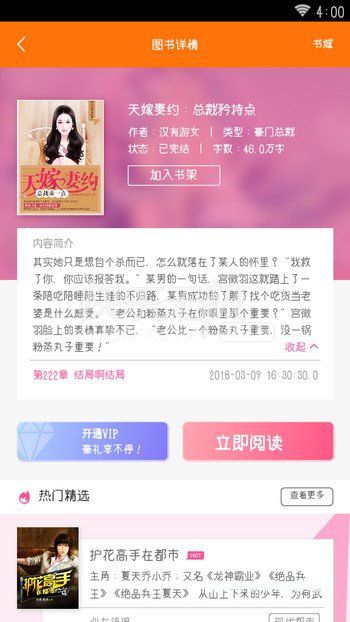 天嫁妻约总裁矜持点APP内全文完整章节在线阅读让人看了绝对上瘾的网络小说,最新的故事章节,全新的内容,丰富的题材,体验非一般的剧情,感兴趣的你还等什么一起来免费阅读这部人气网络小说。