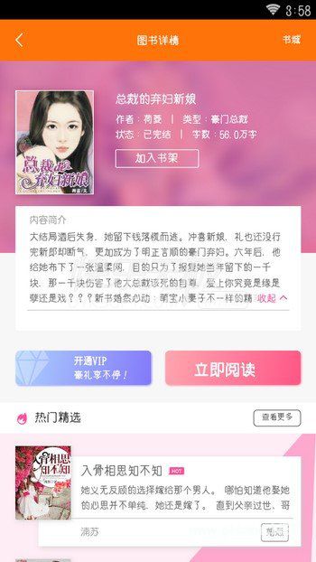 爱情这件小事,简单却又复杂,《总裁的弃妇新娘》告诉我们,一见钟情这种事,浪漫但不一定长久;日久生情这种事,很难却更难分开。“安然,你很漂亮”,安心由衷的赞美。于安然很无奈地看了于安心一眼,“当然漂亮,今晚我要跟爸妈去参加高级酒会,不过像你这种人是不可能进得去的”,于安然临走前还不忘挖苦一翻安心,从小欺负安心也倒成为她的一件乐事,像于安心这种不祥的人,谁都有权欺负的。更多类似《总裁的弃妇新娘》的优质言情小说,尽在本站提供的app内,快来下载吧。