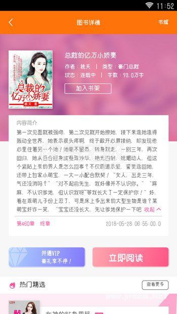 总裁的亿万小娇妻免费阅读,作者文笔精湛,故事情节丰富,人物性格饱满,非常适合闲暇阅读!
