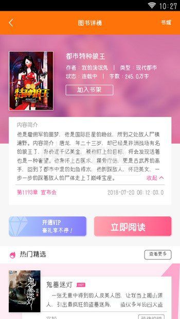 都市特种狼王全章节目录,作品受数万人追捧,极具价值,人物塑造深受读者喜欢,套路到极致也是成功!总之,这本书能够让人眼前一亮!