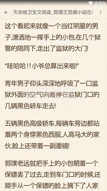 小编为您免费提供天命绝卫完整版全文阅读,作者文笔细腻,生动,故事情节曲折感人。想知道郭璞王思睿小说结局的朋友,小编提供天命绝卫(郭璞王思睿小说)全文完整章节APP内在线阅读,支持郭璞王思睿小说全文免费阅读。