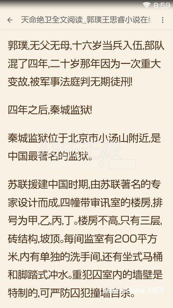 怎样免费阅读天命绝卫(郭璞王思睿)全本章节小说?下载安装App后在APP中搜索小说名《天命绝卫》,如果没有您要的小说,请联系APP内的客服!