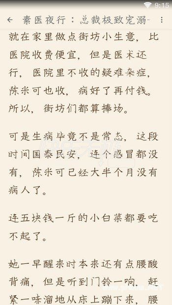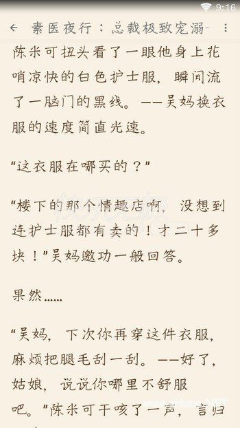 一点一滴,一丝一缕,一日一读小说《素医夜行》,剧情那些美丽的邂逅与悲戚的离别显得那么始料未及,出其不意的情节让你心弦不已。陈米可这才意识到,岳三少对自己的突然举动,只是因为他看见了那个举起抢的人,猝不及防之间,下意识地保护她而已。虽然他是个脑子有问题的混蛋,但也是一个十足的绅士,还算不错。想阅读《素医夜行》更多精彩内容可以在本站APP内全文免费在线阅读完整全本资源大结局。