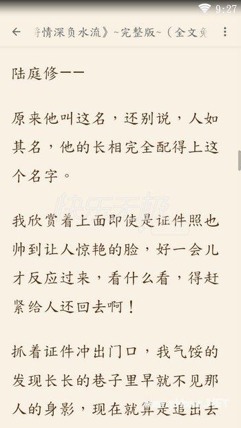 莫将情深负水流完本小说APP内免费阅读,完整的章节,无任何弹窗广告;一本在故事上精彩无限、在感情上流连婉转、在文笔上入木三分的小说,不管从哪个角度看莫将情深负水流小说,想体验文笔的美好,就下载小说莫将情深负水流完整免费阅读。