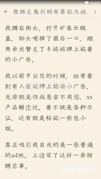 夜班见鬼全文分享阅读,故事虽平凡,感情却真挚,充沛,感人。文章结尾不落俗套,给人以欲还休的感觉。喜欢看夜班见鬼刘明布小说全文的朋友,小编提供夜班见鬼刘明布小说完整版APP内在线阅读,支持夜班见鬼刘明布小说全文免费阅读。