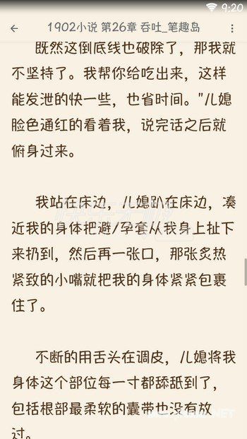 爱一次,伤一回。兜兜转转,等那没有结局的天长地久。这本痴心小说《1902》等你来品味。当我们用最快的速度伪装成一切没有发生之后,我就听着卫生间外侧的洗漱间响起了刷牙的声音。巨大的惊吓中,我感觉这几秒钟我流了一身汗,现在浑身都没有了力气。因为我不知道儿子看到刚才的一幕时,又会是什么样的后果。儿子刷牙的功夫,儿媳就匆忙回了他们的卧室。《1902》全文免费资源尽在小编提供的网站。