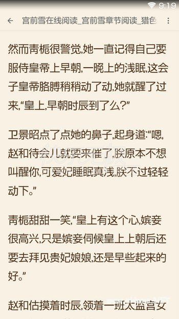 一些感情描写不但欢快而且有趣,还不失大体,一部“妙语连珠”的小说《宫前雪》上线了。孟念云一向懦弱,初初进宫时连手脚都不知往哪里放,手心一叠叠的冷汗,这会儿看到傅青栀才憨然笑道:“不敢麻烦姐姐,我只是来过个过场,爹娘说凭我的品貌是决不会入选的,倒是姐姐你,是天生的仙姿玉容,举止贵气,一定会被留牌子。”小编还提供《宫前雪》全集在线阅读,不要错过!