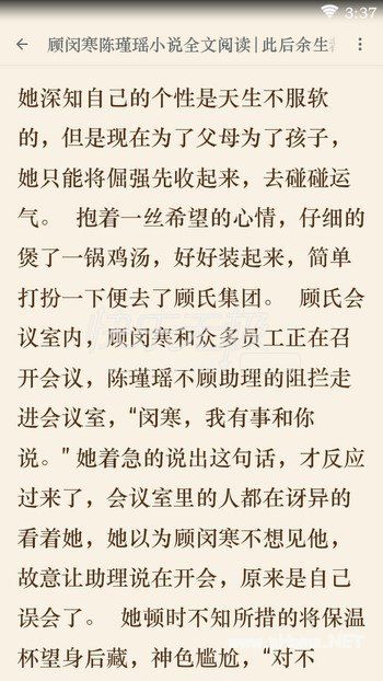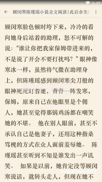 注:886动漫重视作者及相关版权方权益,只推荐知名作者及其作品给读者朋友们,886动漫不提供在线阅读服务,仅发表小编对《此后余生都是你》小说的个人见解和感受,不以盈利为目的,小说均来自相关小说阅读APP授权,如果无意中侵犯了您的权益,建议先联系APP方面确认是否有授权关系,如确认没有授权关系,我们愿意配合排除影响及时下架。怎样进行此后余生都是你(顾闵寒陈瑾瑶)未删节全本阅读?下载安装App后在APP中搜索小说名《此后余生都是你》,如果没有您要的小说,请联系APP内的客服!
