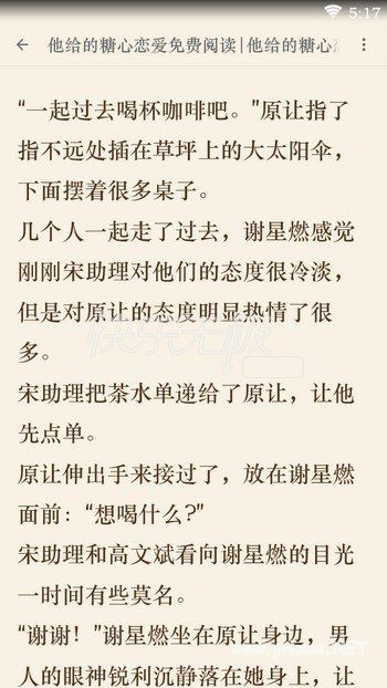 宋助理和高文斌看向谢星燃的目光一时间有些莫名。“谢谢!”谢星燃坐在原让身边,男人的眼神锐利沉静落在她身上,让她有些窘迫的低下头,“我要甜一点的,卡布奇诺吧。”。小编最近也看得停不下来的小说《他给的糖心恋爱》,为您带来app内免费全本下载阅读。
