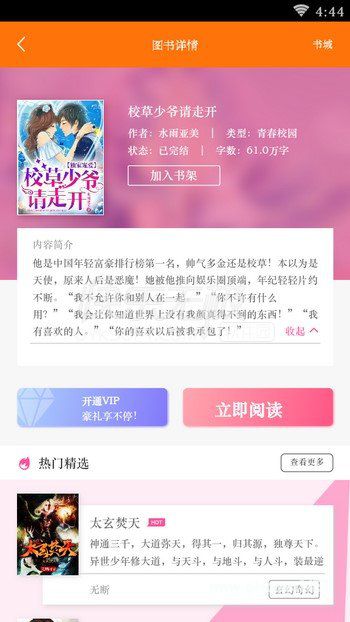 青春是一个短暂的美梦,当你醒来时,它早已消失无踪。读青春爱恋小说《校草少爷请走开》,重温那个逝去但美丽的梦。突然一个人把我拉入了他的怀抱,我正纳闷是谁的时候,抬头一看,尹旭那张帅颜便映入了我的眼帘,这个我心心念念喜欢了三年的人,我的现任男朋友。《校草少爷请走开》是小编自己最近这段时间最喜爱的一本小说,为您带来全本资源,喜欢你也会喜欢上它。