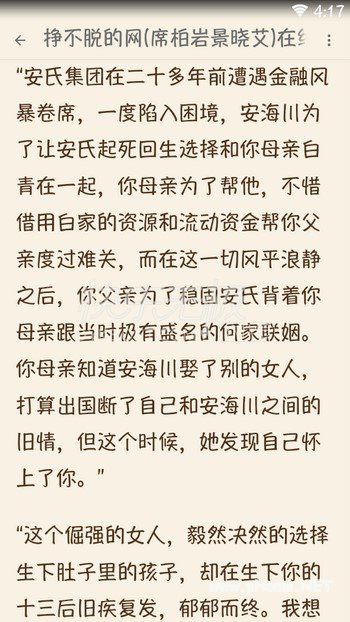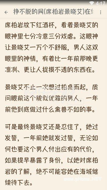挣不脱的网(席柏岩景晓艾)全文完整章节APP内免费阅读分享完整版小说,作品 风格搞笑,构思大胆,脑洞清奇,区别于传统的总裁文,作者脱离套路,用个性化描写手法和 不一样的角度描绘出了一个既啼笑皆非又感人至深的故事,大胆的构思也让人眼前一亮!诚挚 推荐,这是一本值得追捧的精品好书。