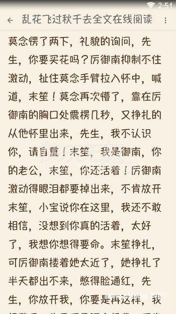 乱花飞过秋千去小说全文文笔顺畅,勾引着我想要把文一口气全部看完。乱花飞过秋千去小说全本资源带给追书的你,喜欢的朋友欢迎下载阅读乱花飞过秋千去(末笙厉御南小说)完整章节APP内免费阅读 完整版,支持乱花飞过秋千去全文在线阅读。