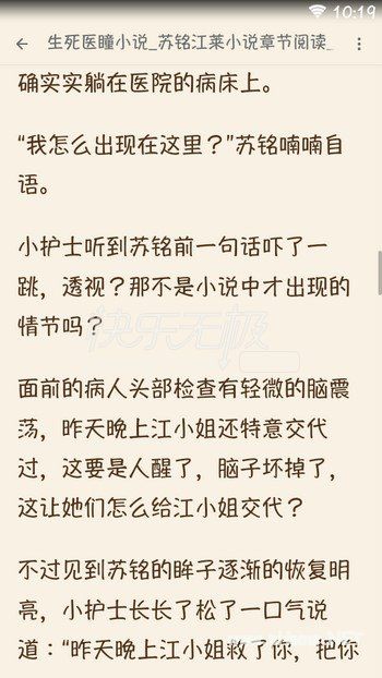 生死医瞳(苏铭江莱小说)全文免费APP内阅读:作者文笔精湛,故事情节丰富,人物性格饱满,是一部难得的好书,值得推荐。喜欢全本资源的朋友,欢迎来生死医瞳小说免费阅读全文。