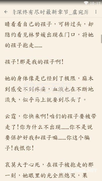 《情深终有尽时》是一部浪漫都市和超现实结合的爱情小说。题材挺有意思的,内容有幽默轻松,也有虐恋情深。这样的情况一直延续到第五天,这天,虞宛醒来的时候,像往常一样,厉云霆已经出去了,房间里只剩她一个人。她伸手摸了摸他躺过的地方,似乎还残存一丝温度,虞宛苦笑,然后开始梳洗打扮,穿了一条很美的淡紫色连衣裙,这裙子是厉云霆送给她的第一件礼物,她一直都很小心的留着。欢迎大家到本站下载《情深终有尽时》全文阅读。