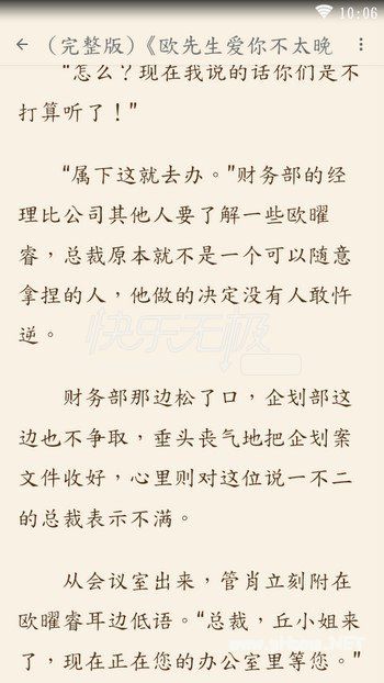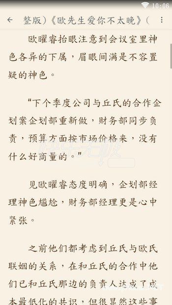 欧先生爱你不太晚完整版小说全文免费阅读资源已出,小说剧情展开的速度不急不缓恰到好处,值得一读。全文文笔顺畅,勾引着我想要把文一口气全部看完。 真正为之感动欣悦的,是她和男主间的感情是一日一日升温而来, 淡淡的,不是冲击却是更为坚固,终是慢慢溶于血水中,携手相伴。