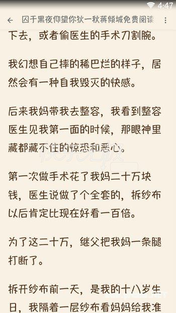 小说《囚于黑夜仰望你》主角为爱放下理智,放下尊严,放下执着,唯独放不下她。赌场里人声鼎沸,不论是筹码大的还是筹码小的桌位前都围满了人群。这年头,喝酒伤身,吸烟又伤肺,男人们除了把钱花给外面的女人,就是在赌场里尽情浪费资本,若是能赚点本钱回来一举两得,若是赔了个精光也是自己活该。小编也在追的小说《囚于黑夜仰望你》。非常值得一看!