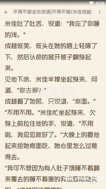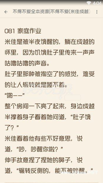 怎样看不得不爱(米佳成越)完整版小说全文APP内在线阅读?下载安装App后在APP中搜索小说名《不得不爱》,如果没有您要的小说,请联系APP内的客服!