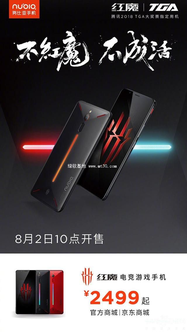 努比亚红魔游戏手机8GB+128GB版本将于今天(8月2日)上午10点开售,价格为2999元,另外官方还宣布将在8月3日举办的ChinaJoy上发布迷彩版本。