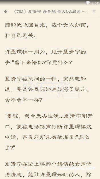 752小说者文笔有灵有爱,是以写出来的宠文富有独特的韵味,752小说全本资源带给追书的你,喜欢的朋友欢迎下载阅读752(许墨琛夏清宁)完结全文APP内在线阅读 未删节,支持许墨琛夏清宁小说全文免费阅读。