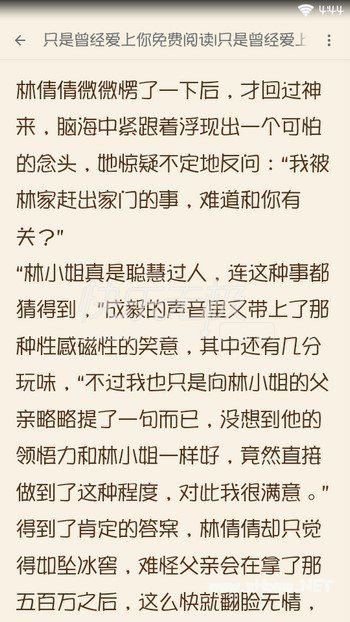 某天,你无端想起一个人,她曾让你对明天有所期许,但她却消失在了《只是曾经爱上你》的故事里,完全没有出现在你的明天。林倩倩微微愣了一下后,才回过神来,脑海中紧跟着浮现出一个可怕的念头,她惊疑不定地反问:“我被林家赶出家门的事,难道和你有关?”在APP内搜索《只是曾经爱上你》即可免费阅读,更多精彩内容尽在小编提供的APP。