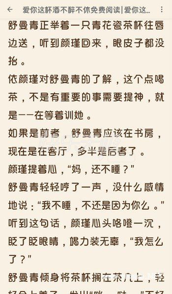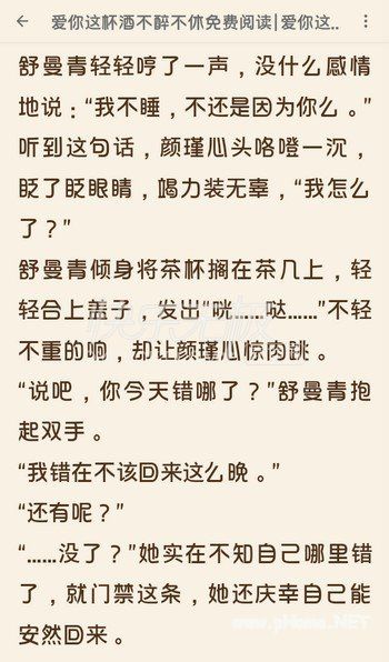 爱情的路,我们都曾经走过,爱情的歌,我们已听的太多,我把我们的事,我心里的话,都写在了《爱你这杯酒不醉不休》这本书里,只对你一个人说。“说吧,你今天错哪了?”舒曼青抱起双手。“我错在不该回来这么晚。”“还有呢?”“……没了?”她实在不知自己哪里错了,就门禁这条,她还庆幸自己能安然回来。想看更多精彩内容的朋友可以在本站APP内免费在线阅读《爱你这杯酒不醉不休》全本资源大结局。