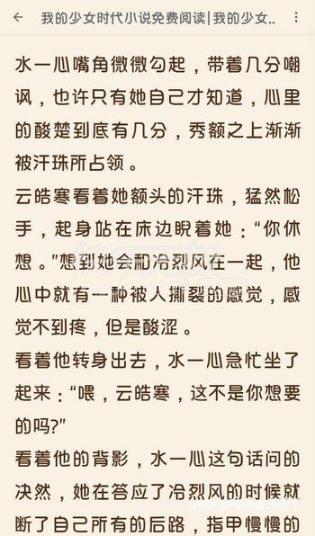 小编为您免费提供我的少女时代完整全文阅读,全文语言流畅,行文舒展自如,自然洒脱,称得上是一篇较成功的之作。想知道水一心冷烈风小说结局的朋友,小编提供我的少女时代(水一心冷烈风)全文完整章节app内在线阅读,支持我的少女时代小说免费阅读。