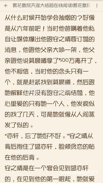 繁花散尽天涯(盛亦轩莫晨曦小说)全文APP内免费阅读 完整版,全文叙事集中,不枝不蔓,语言朴实流畅,感情真挚感人。喜欢的朋友不要错过了。