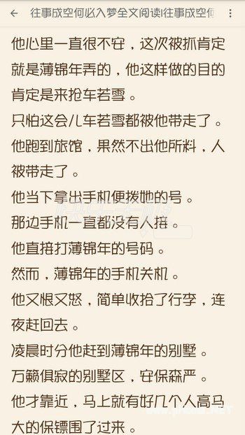 往事成空何必入梦(车若雪薄锦年小说)完整版全文APP内在线阅读:作者擅长宠虐交加,文风独树一帜!小编为大家带来往事成空何必入梦小说全本资源,喜欢的朋友欢迎下载阅读未删节往事成空何必入梦全文阅读。