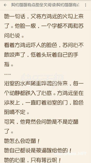 契约婚姻有点甜(苏问心方鸿远小说)完整章节APP内在线阅读:作者句里行间一步步描绘出了男女主角之间的感情长跑,也同时把读者带入了属于他们的世界。喜欢的朋友欢迎下载阅读完整版契约婚姻有点甜全文阅读。